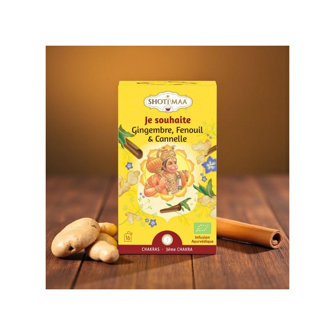 🍵 Tisane bio Shoti Maa – Gingembre, Fenouil & Cannelle (16 sachets individuels)