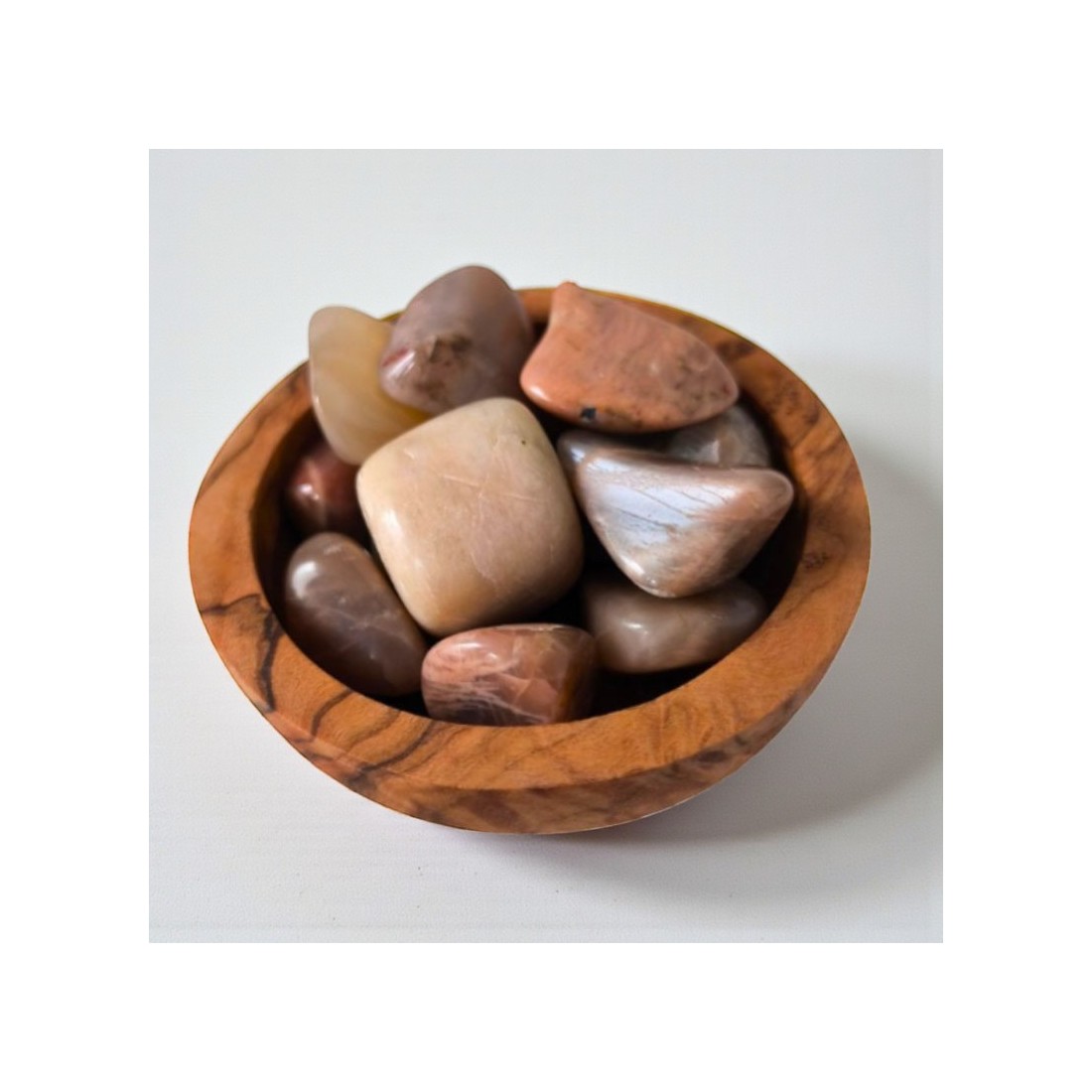 La pierre de lune multicolore est une pierre naturelle reconnaissable à ses nuances claires mêlant des reflets blancs, beiges, rosés ou légèrement gris, parfois soulignés d’un éclat nacré subtil. Son aspect doux et lumineux en fait une pierre appréciée pour sa présence délicate et rassurante. Les pierres de lune proposées ici sont issues d’Inde, pays reconnu pour la qualité de ses gisements.
