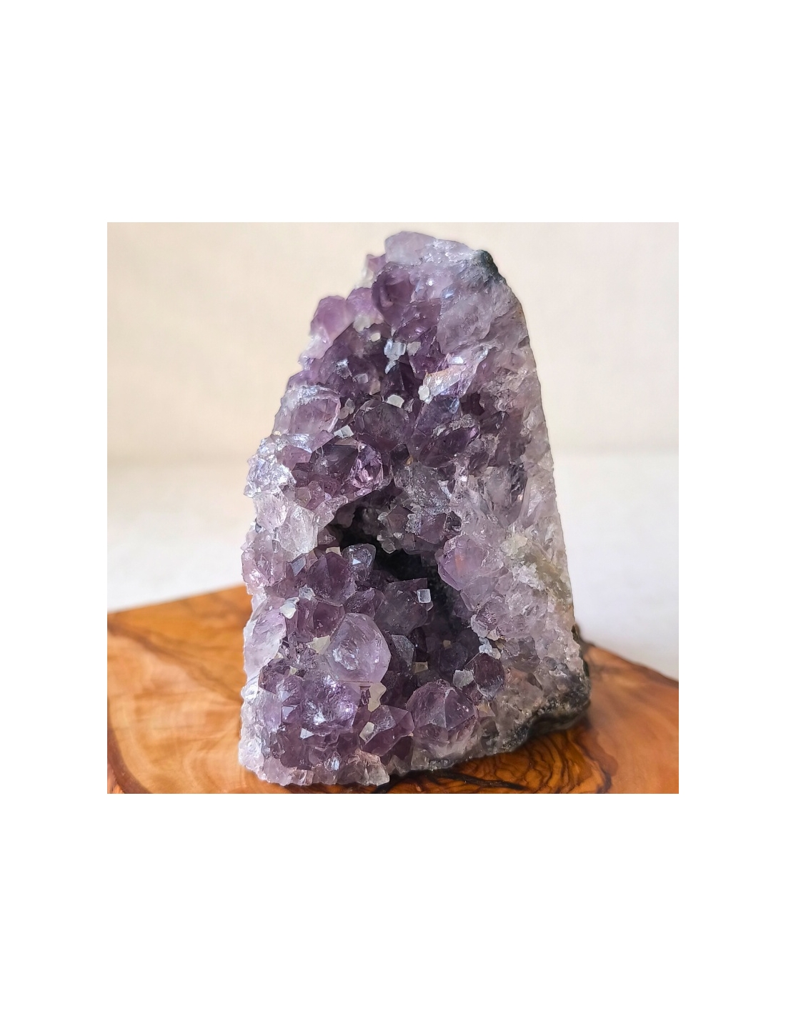 L’améthyste était déjà utilisée dans l’Antiquité comme pierre de sagesse et de protection. Son nom vient du grec amethystos, signifiant « qui protège de l’ivresse ». Les géodes, formées dans les entrailles de la Terre pendant des millions d’années, concentrent l’énergie des cristaux et la diffusent en continu dans l’environnement.